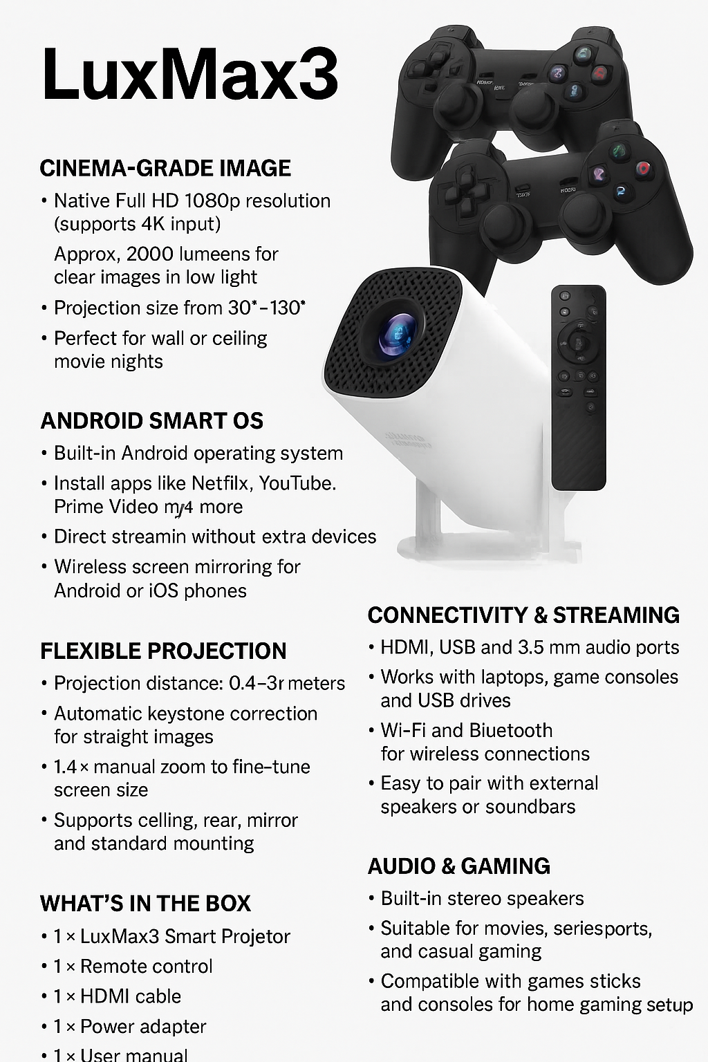 • 1 × LuxMax3 Smart Projector