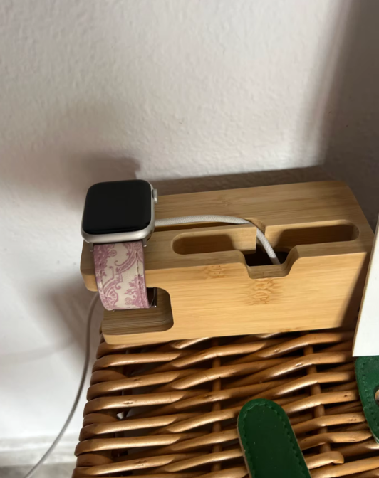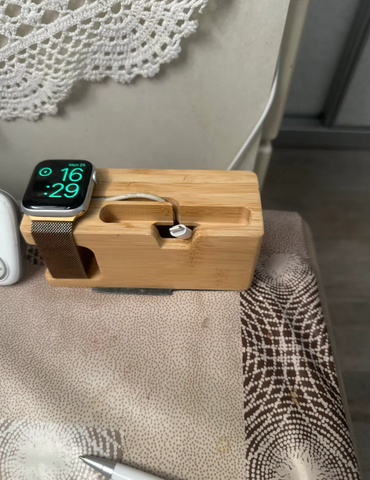 It keeps everything in one place, and it looks so clean on my nightstand. The wood finish makes it feel a lot more natural compared to the usual plastic stands. Now I don’t have cords all over the place, and my watch charges every night without a problem. Honestly, it’s both beautiful and practical.